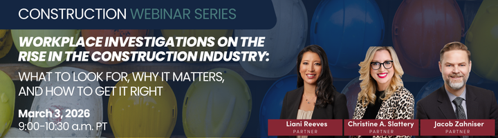 This complimentary webinar is designed for professionals who manage people, projects, and risk on construction jobsites, including project owners and developers; general contractors and subcontractors; HR and operations professionals; in-house counsel and compliance leaders; project managers; safety professionals; and other construction-industry advisors. Please share this invitation with colleagues responsible for handling workplace complaints, investigations, or employee relations.